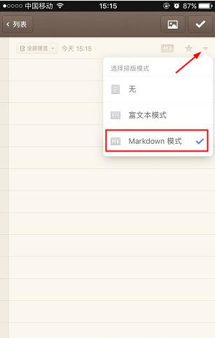 4.然后新建一個(gè)便簽,點(diǎn)擊右上角星星圖標(biāo)旁邊的箭頭符號(hào),選擇Markdown模式