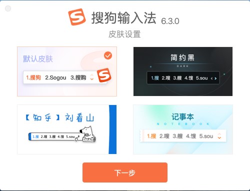 4、還可以選擇自己喜歡的皮膚,如kkx小編分享的搜狗輸入法MAC版???????安裝截圖: