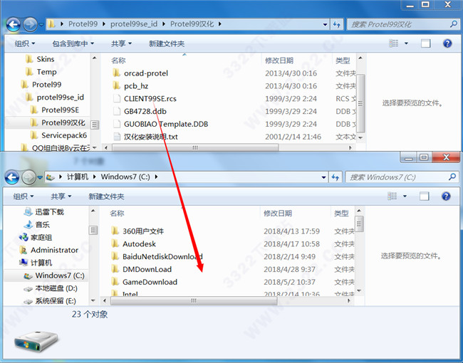 1、將解壓包中“Protel99漢化”文件夾中的“CLIENT99SE.rcs”文件復制到“C:\Windows”目錄下。