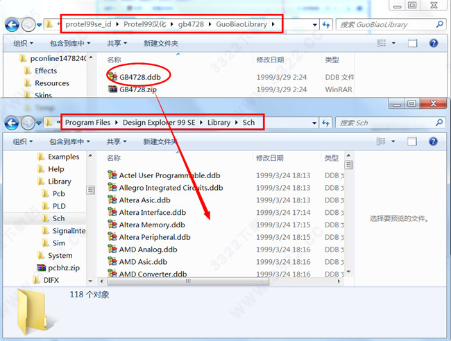 3、將解壓包中的“GB4728.ddb”文件復制到“C:\Program Files\Design Explorer 99 SE\Library\Sch”目錄下,將文件的只讀屬性去掉。