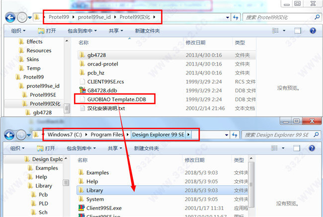 4、將“GUOBIAO Template.DDB”文件復制到“C:\Program Files\Design Explorer 99 SE”目錄下,將文件的只讀屬性去掉。