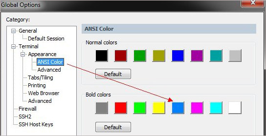 Options ——》 Global Options ——》 Terminal ——》 Appearance ——》 ANSI Color