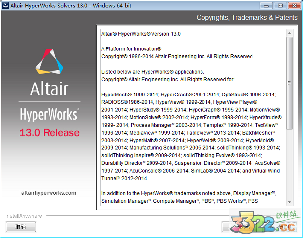 1、將kkx分享的hypermesh壓縮包下載后解壓出來,點(diǎn)擊“hwsolvers13.0_win64.exe”程序開始正式的安裝(在安裝包中還有其他附屬的程序可供用戶選擇安裝,這里用戶自行選擇是否要安裝吧)