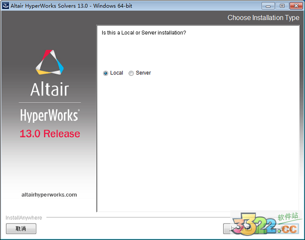 6、默認(rèn),選擇local即本地安裝進(jìn)行安裝,還有一個(gè)選項(xiàng)是服務(wù)器,用戶根據(jù)自己的需要進(jìn)行選擇吧