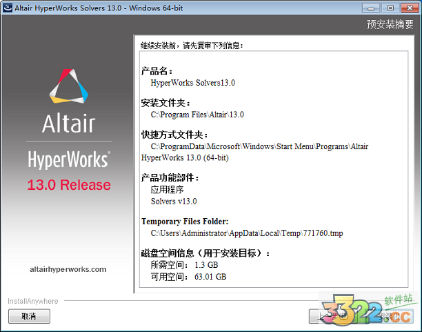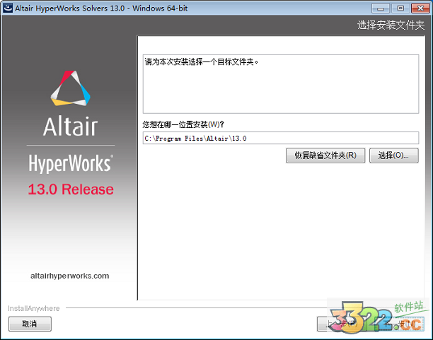 7、選擇安裝路徑,安裝的路徑不能有中文的存在,默認(rèn)C: \Progr am Files\Altair\13.0