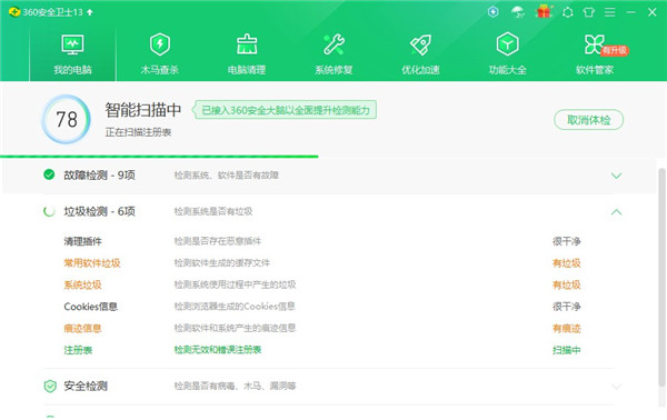 清理無用插件、軟件垃圾、瀏覽痕跡和無效注冊表。