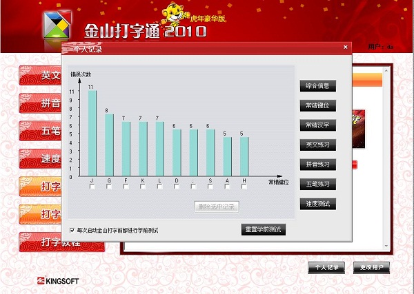 1.每一個用戶能夠擁有自己個人記錄,能展示了打字的速度與完成文章內(nèi)容,常錯部位和常錯中國漢字。