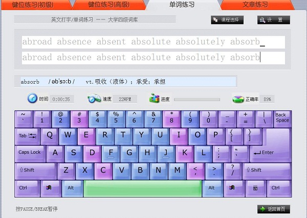 3.從簡到艱難從英語單詞或五筆字根一直到短語和文章。一步一步協(xié)助用戶練習(xí)打字技巧。