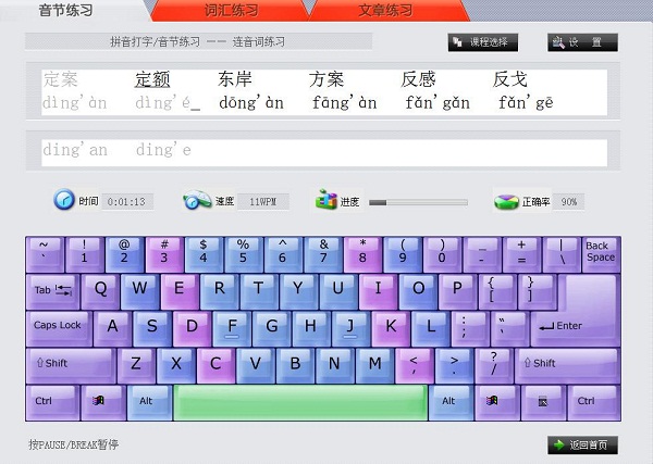 2.提供英語打字、拼音字母打字、五筆打字三種電腦輸入法知識與訓(xùn)練。針對性訓(xùn)練用戶把握打字技巧。