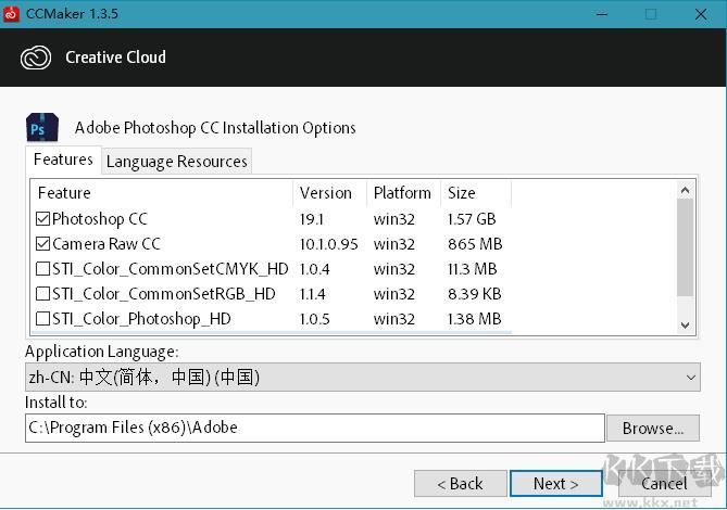2、在CCMaker工具內選擇下載的產品,還可選其它可用組件和多國語言資源。