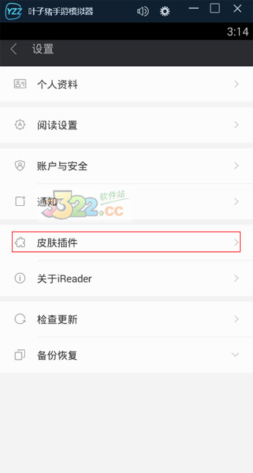 2.點擊“皮膚插件”去下載關(guān)于閱讀器的插件。