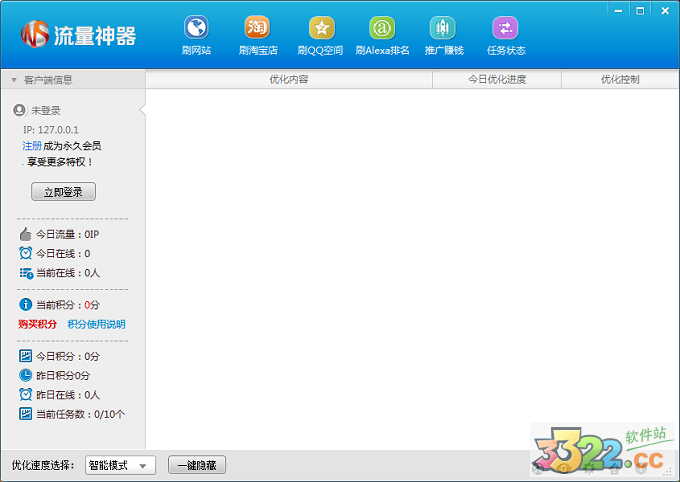 流量神器是一款免費(fèi)好用的刷流量軟件,體積超小,僅有300K的一款綠色軟件,使用簡(jiǎn)單,無須注冊(cè)用戶名,填入要提升流量的網(wǎng)址或者要提升Alexa排名的網(wǎng)站,點(diǎn)擊“開始優(yōu)化”按鈕即可。刷網(wǎng)站流量,刷淘寶店流量,刷空間流量,刷Alexa排名,還可以推廣賺錢哦!如果你正在尋找流量神器的話那么快來通過kkx分享的地址來獲取破解版的流量神器吧!