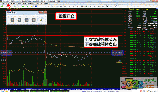 3、畫(huà)線下單,最直觀的下單方式,如kkx分享的軟件截圖: