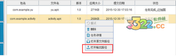 也可在列表里選中任務(wù),右擊鼠標(biāo)選擇“打開輸出文件所在路徑”。系統(tǒng)將自動(dòng)打開APK輸出路徑,如kkx小編分享的圖片: