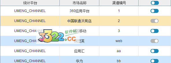 統(tǒng)計(jì)平臺(tái):即android name, 應(yīng)用中集成的數(shù)據(jù)分析sdk的公司所要求在AndroidManifest.xml文件中Meta-data標(biāo)簽中填寫的android name(下拉列表里提供了若干選項(xiàng),也可手動(dòng)輸入);