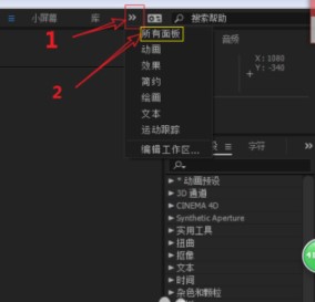 4、想要恢復(fù)很簡(jiǎn)單,我們可以這樣進(jìn)行操作!使用鼠標(biāo)單擊菜單欄上方的“》”符號(hào),然后在彈出的選框中單擊打開“所有面板”按鈕,如kkx分享的圖片: