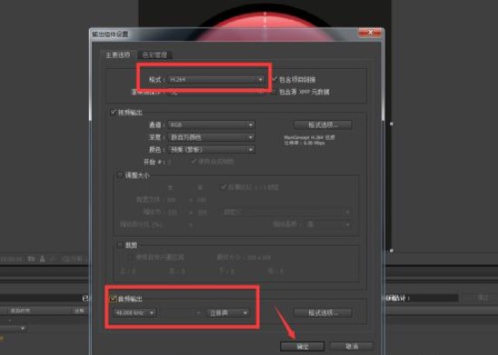 3、如果想要mp4格式視頻,選擇H2.64,想要其他格式自己選!別忘記把音頻輸出勾選上,如kkx分享的截圖: