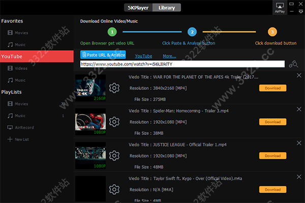 二、5KPlayer是無所不能的影片下載軟件,你想要的都可以一鍵下載