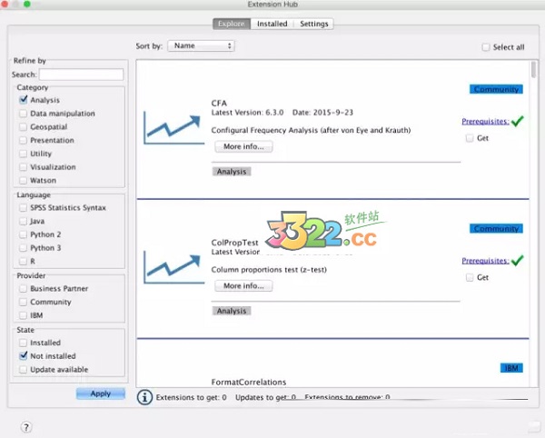 除了通過編程語言實(shí)現(xiàn)擴(kuò)展功能,IBM SPSS Statistics提供Extension Hub,可輕松地下載、更新和除去擴(kuò)展,試用當(dāng)前一些新功能