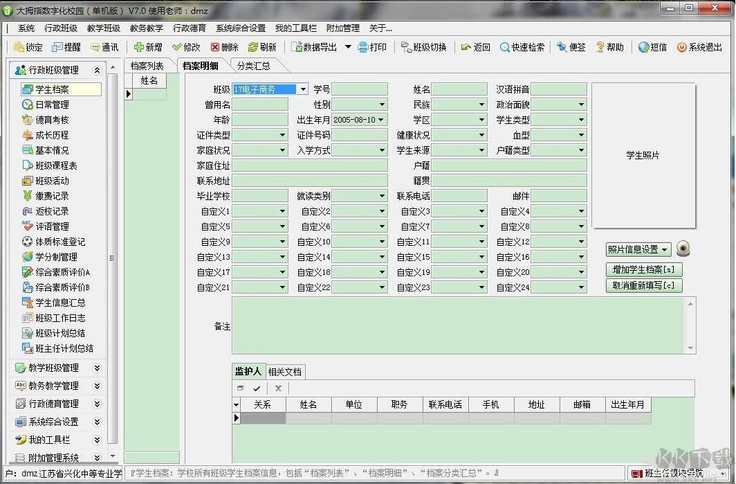 大拇指數(shù)字化校園(原班主任大師)單機(jī)版破解版,是一款功能非常強(qiáng)大的老師用的管理軟件,它包含了學(xué)生管理和教師管理,主要包含了行政班級(jí)管理、教學(xué)班級(jí)管理、教務(wù)教學(xué)管理、行政教育管理等多個(gè)板塊,接近400個(gè)校園管理子模塊,包含校園管理方方面面。可以說(shuō)是應(yīng)有盡有。主要的有學(xué)生信息管理,無(wú)論是學(xué)生的成績(jī)、檔案、學(xué)籍等都能非常方便的查詢管理。而教師信息管理主要是教工信息、考勤、培訓(xùn)等工作的安排管理。而班級(jí)工作管理也是比較重要的一塊。能夠進(jìn)行課程安排、班干部管理、宿舍管理等方面的操作。該軟件是數(shù)字化校園非常好的一款軟件,有需要的朋友可以下載使用。