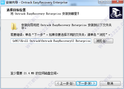 3.選擇安裝位置,默認(rèn)路徑為“C:\Program Files (x86)\Kroll Ontrack\Ontrack EasyRecovery12 Enterprise”,如kkx分享的圖片