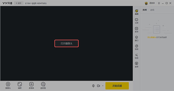 3、設置好美顏參數(shù)后,點擊右上角“請登錄”,登錄你的YY直播賬號: