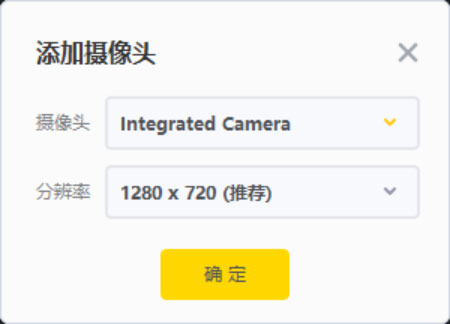 2、點擊“打開攝像頭”,選擇攝像頭和分辨率: