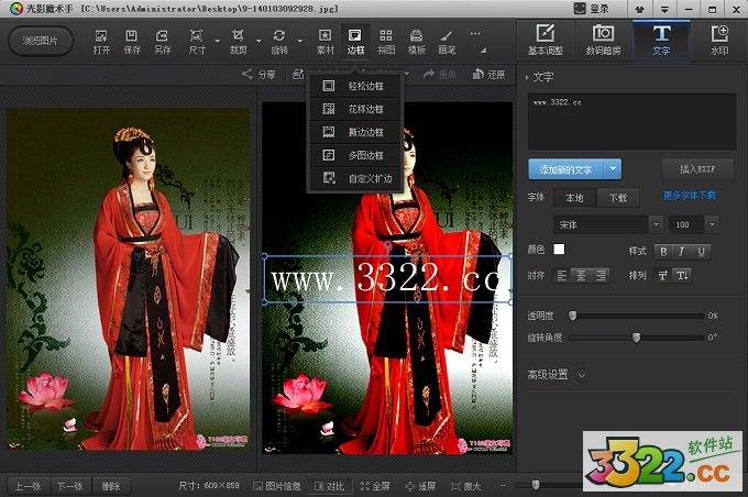 十五、文本:光影魔術(shù)手內(nèi)置了多種字體,能夠改變字體顏色,調(diào)整視角,調(diào)整清晰度等。