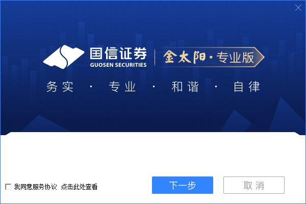 1、在本站下載下載國(guó)信證券金太陽(yáng)網(wǎng)上交易專業(yè)版安裝包,點(diǎn)擊右下角同意開始安裝