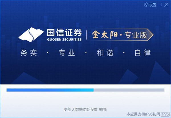 國(guó)信證券金太陽(yáng)專業(yè)版是一款由國(guó)信證券自主研發(fā)的一款一站式金融投資理財(cái)軟件,提供實(shí)時(shí)行情、網(wǎng)上交易、財(cái)經(jīng)新聞、研究報(bào)告、基本資料、專家門診及證券信息全文檢索功能。手機(jī)上炒股很多股民還是不習(xí)慣的,還是喜歡在電腦上看著大屏炒股比較舒適,國(guó)信證券金太陽(yáng)專業(yè)版電腦版可以讓你在電腦上使用大屏幕進(jìn)行炒股。國(guó)信證券金太陽(yáng)專業(yè)版為股民提供實(shí)時(shí)行情、基本資料、網(wǎng)上交易、財(cái)經(jīng)新聞、研究報(bào)告、專家門診及證券信息全文檢索功能,對(duì)這款國(guó)信證券金太陽(yáng)專業(yè)版感興趣的朋友不要錯(cuò)過了咯!
