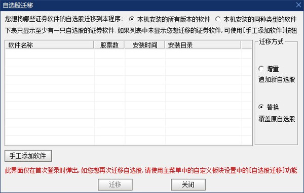 6、可以通過自選股遷移將其他證券軟件的自選股遷移到本程序