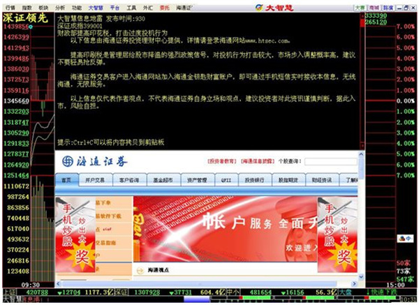 海通證券網(wǎng)站上提供了投資者內(nèi)容更全面、更周到的資訊和服務(wù)內(nèi)容,客戶在大智慧軟件的菜單上里點(diǎn)擊“海通證券”即可直接進(jìn)入網(wǎng)站。