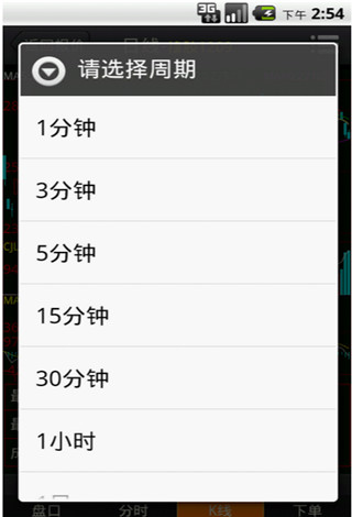 在功能菜單中,選擇“周期”,進行分析周期選擇,默認分析周期包括1分鐘、3分鐘、5分鐘、10分鐘、15分鐘、30分鐘、1小時、3小時、8小時、1日。