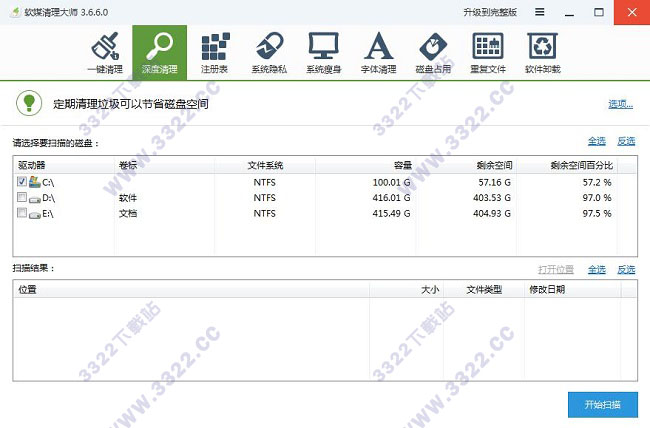 可設(shè)置定期清理垃圾并節(jié)省磁盤(pán)空間,可自主選擇要掃描的盤(pán),包括C/D/E