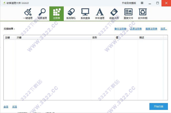 可備份注冊(cè)表、還原注冊(cè)表、搜索注冊(cè)表,并可搜索整個(gè)空間的注冊(cè)表,并可直接清理注冊(cè)表