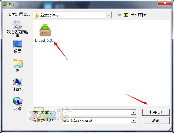 2、找到要添加的apk文件,選中后點擊“打開”,軟件就會自動進行安裝