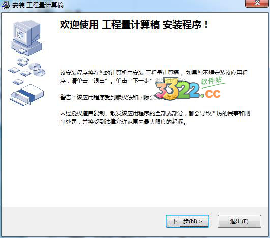 1、程序本身的安裝很簡單,先點擊“工程量計算稿1.54.exe”開始安裝,安裝只需全部默認安裝即可;