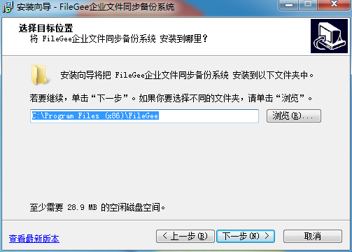 4、選擇設(shè)置一下軟件安裝目錄,默認(rèn)為“C:\Program Files (x86)\FileGee,點(diǎn)擊下一步,如kkx分享的截圖: