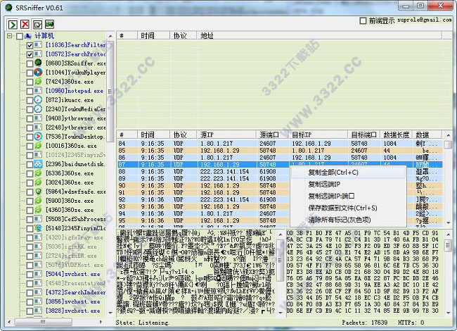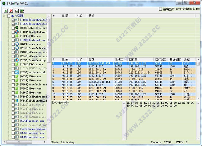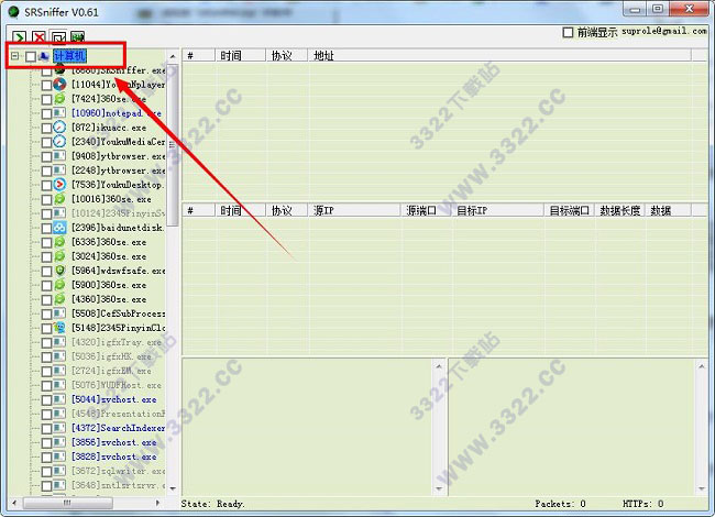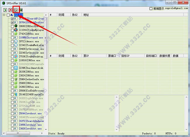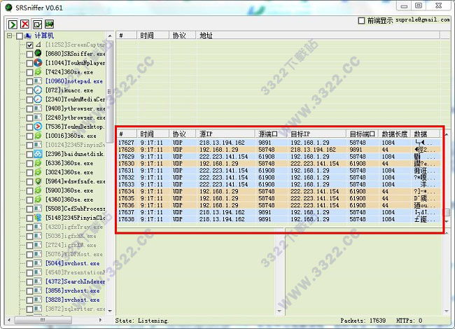2、支持監(jiān)聽指定進(jìn)程,使用2種顏色的數(shù)據(jù)包列表讓你更加直觀了解網(wǎng)絡(luò)情況