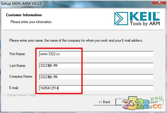 4、這里不能直接默認(rèn)哦,用戶需填寫全部的四個(gè)內(nèi)容才可以進(jìn)行下一步的安裝,至于什么內(nèi)容用戶可以隨意進(jìn)行填寫,如kkx下方分享的截圖所示: