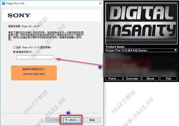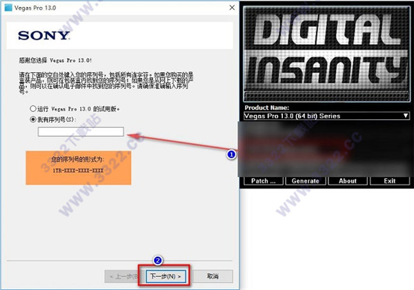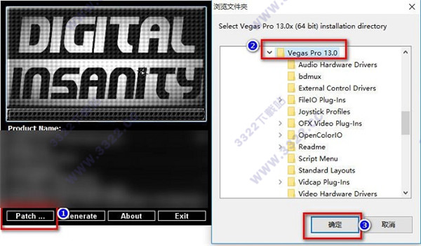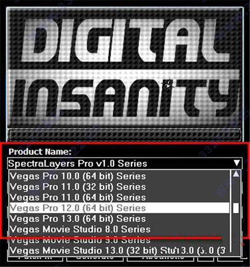 6、然后打開(kāi)注冊(cè)機(jī),選擇“Vegas pro 13.0”,如kkx小編分享的安裝截圖: