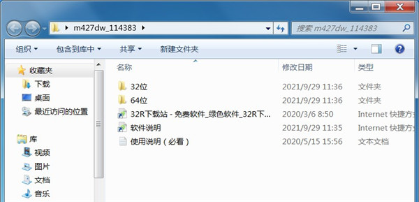 1、從本站下載惠普m427dw驅(qū)動壓縮包后,將其解壓后即可看到32/64位的驅(qū)動適配版本;