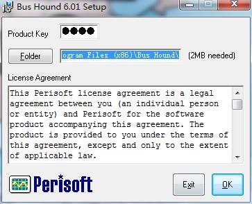 1、解壓安裝包,點(diǎn)擊Setup.exe開始正式的安裝,輸入Product Key:49940,并選中程序的安裝目錄,默認(rèn)路徑為C:\Program Files (x86)\Bus Hound\,可點(diǎn)擊Folder更改路徑,或直接默認(rèn)點(diǎn)擊Ok,如kkx分享的截圖: