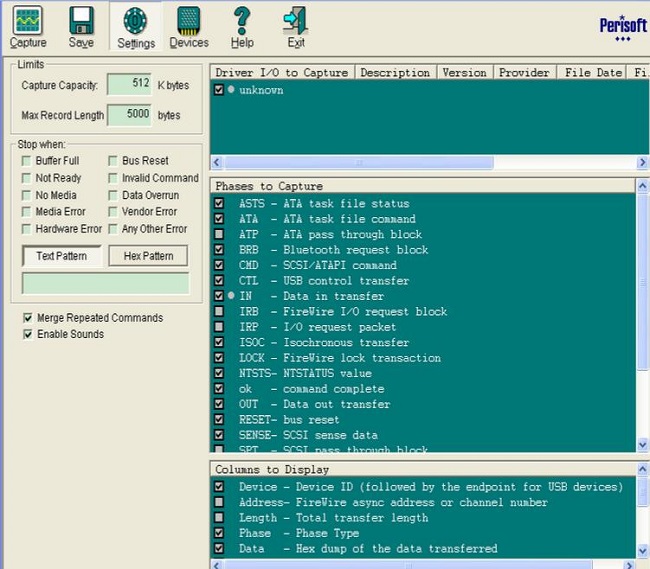 選中此項(xiàng)將自動捕獲檢測到的新設(shè)備的數(shù)據(jù),這項(xiàng)特色功能尤其適用于發(fā)送到熱拔插設(shè)備的第1個命令