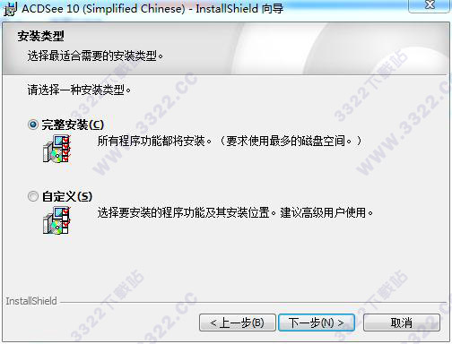 3、選擇軟件的安裝類型,選擇完整安裝或者自定義安裝,如kkx分享的截圖: