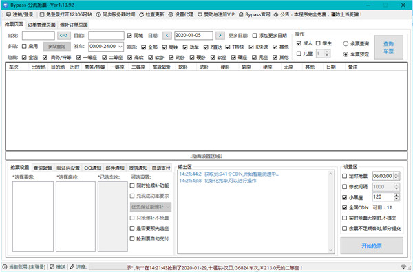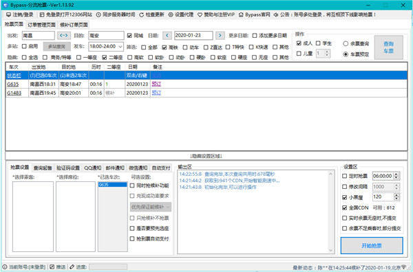 3、進(jìn)入12306分流搶票主界面之后,設(shè)置好搶票信息,具體的日期時(shí)間、座位、起始站、終點(diǎn)站等