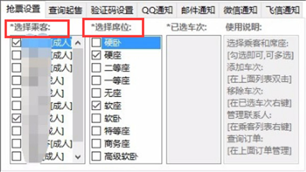 在12306分流搶票app上挑選就診人-席別-班次,提議選取班次和席別,擴(kuò)大成功的概率