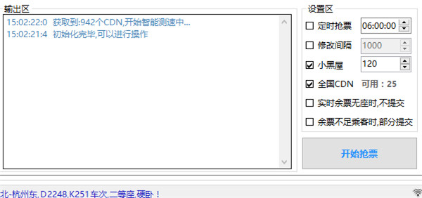 7、回到最右下角的位置,直接單擊“開始搶票”,你還可以設(shè)置間隔時(shí)間,小編一般都是直接開始搶票,并為有過多的設(shè)置