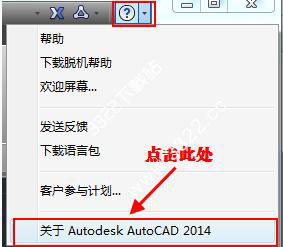 3、進(jìn)入程序后選擇窗口右上角“幫助”下拉列表按鈕,選擇“關(guān)于AutoCAD2014”選項(xiàng)