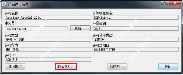5、出現(xiàn)“產(chǎn)品許可信息”對話框,點(diǎn)擊“激活”選項(xiàng)